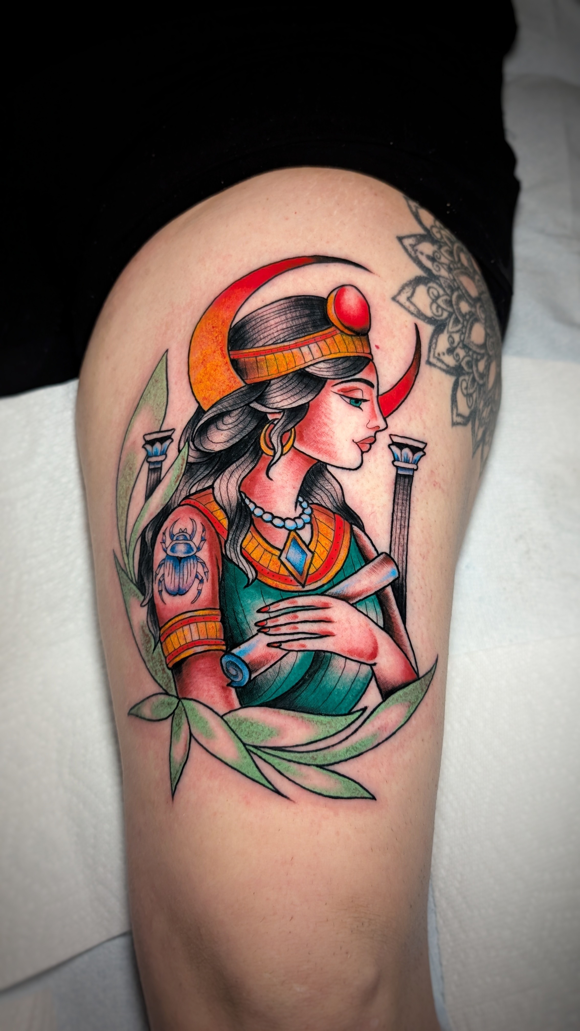 Alongside tattooing, I’m also working on creative projects like a chakra-based coloring book series (first edition has already been published) and a hand-made Goddess Painting Series. I also have the intention to illustrate my own tarot deck and create oracle card decks. I also enjoy oil painting.