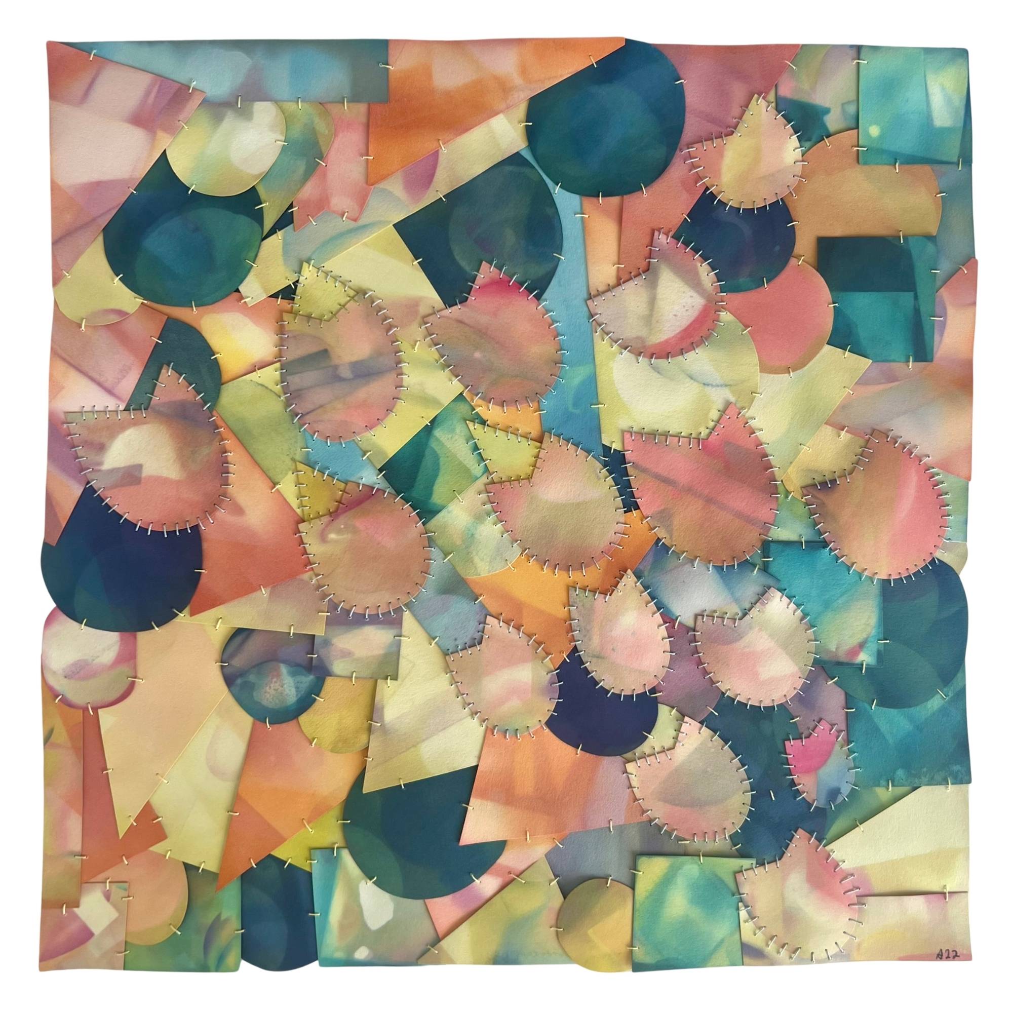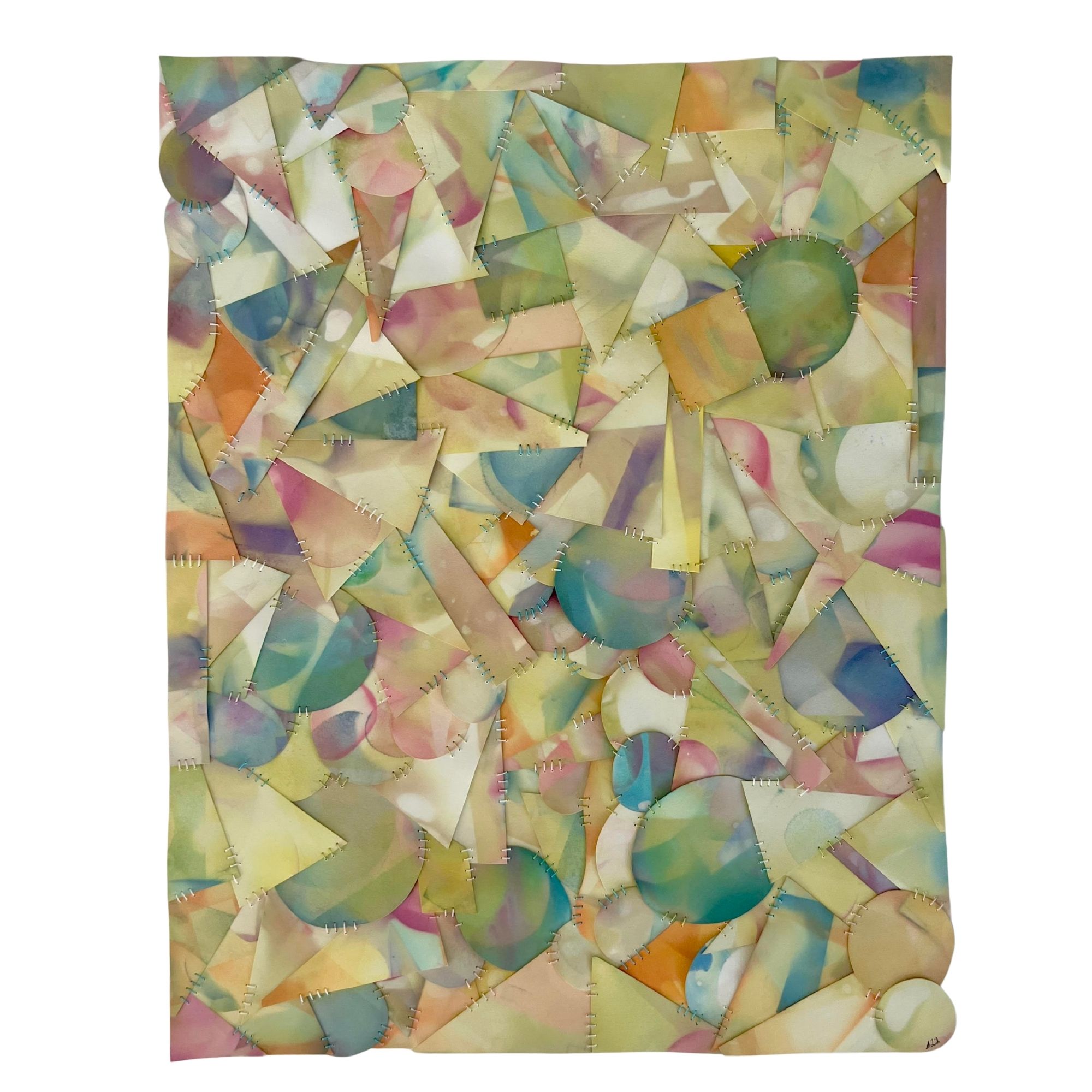 I am an artist living and working in Phoenix, AZ. I have been dyeing paper and selling artwork for over twenty years now. I create colorful, hand-cut, and stitched works of art made from paper. Each piece feels full of movement, and looks as if it is floating in space. I weave in many themes of motherhood, focusing on the idea that we all carry and serve in various roles. Much of my work draws on the abstract themes explored in my doctoral research, which focused on full-time female faculty members who are mothers at community colleges. I focused my research on the daily psychological, physical, and time-based borders women cross to manage their work and family domains. The abstract imagery is playful and rich in texture, representative of this research. Each art piece is hand-dyed with custom colors and stitched together.
