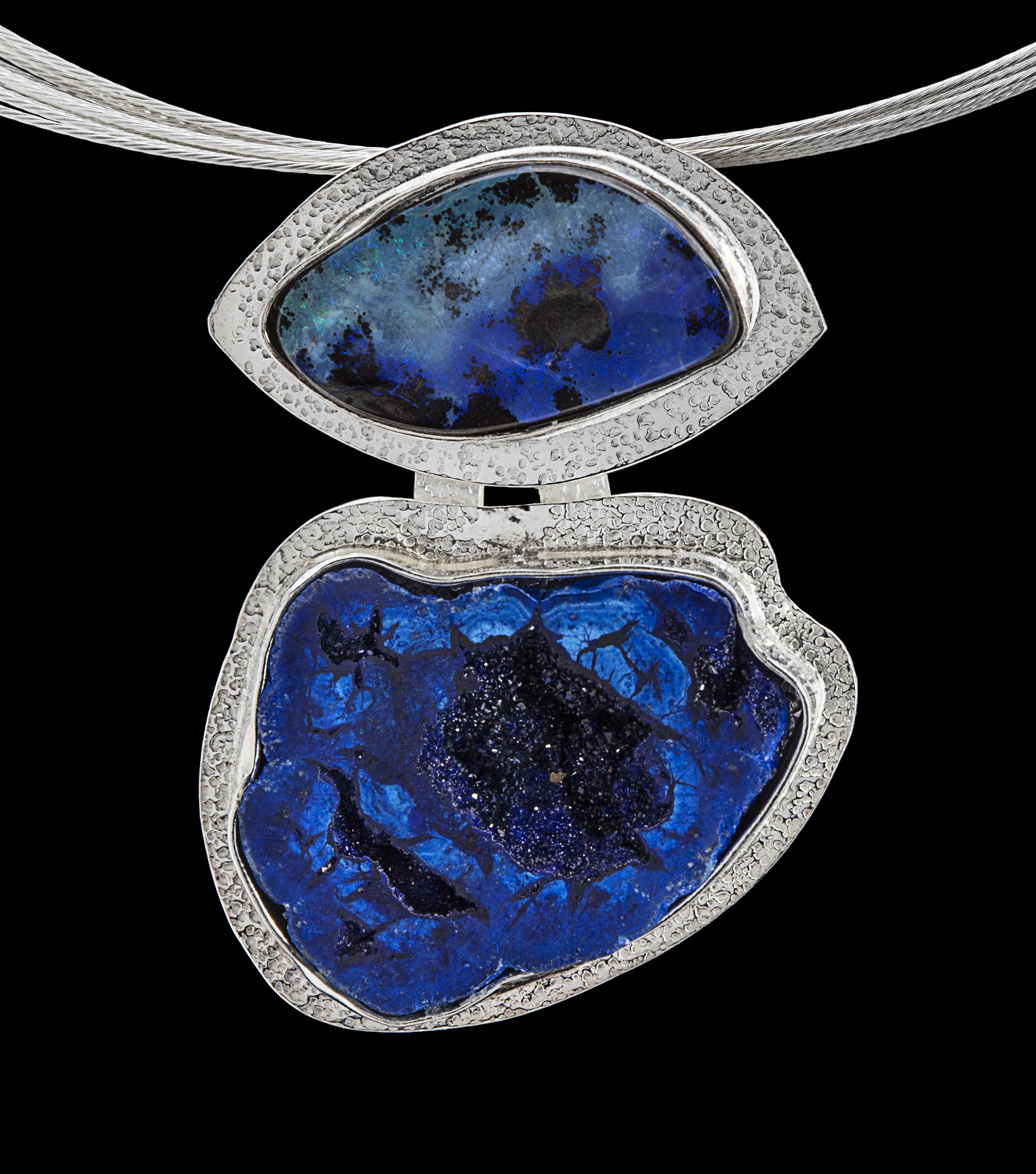 I create wearable art that reflect the customer’s personality. I make bracelets, earrings, pendants, and necklaces. I love using unique stones and techniques to create one-of-a-kind designs. I first purchase stones from the lapidary dealers who cut the stones. I only purchase stones that are unique either in color or shape. That is the element that dictates my design. I then lay the pieces out and add metal and sometimes more stones that have a pop of color or sparkle to carry out my vision. After that, it is sawing, hammering, and soldering to put the piece together. Then, on to polishing to finish the piece before setting the stones. A final polish and the piece are ready for the customer. I want my customers to feel they have chosen a special piece that is a handmade piece of art.