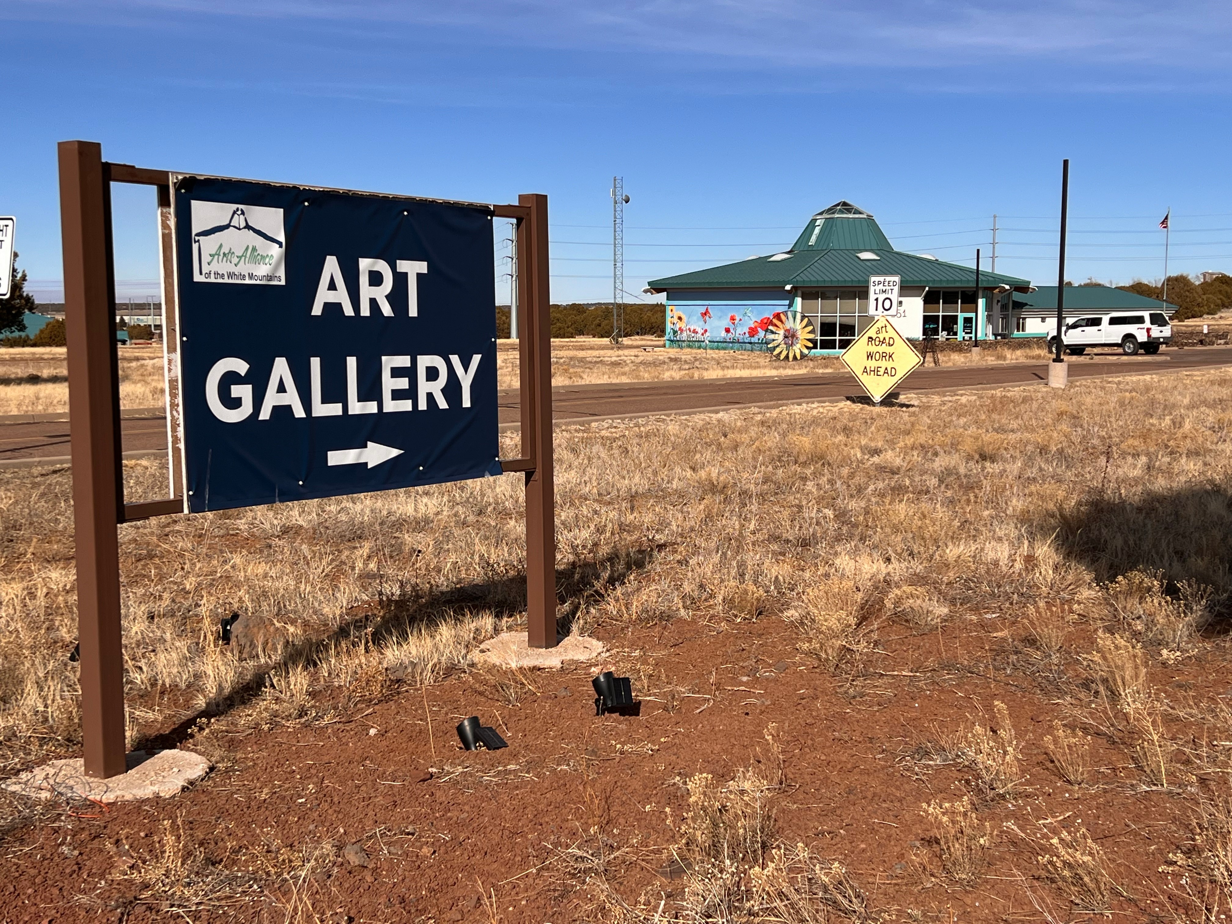 Navajo County has been very generous to the Arts Alliance by allowing us to use their building for a minimal fee. In return, we give back to the community by hosting the monthly Chamber of Commerce luncheon, allowing other community groups, such as the Business Networking Group, to meet here. Our volunteers do a twice-yearly road cleanup. We are currently working on an area-wide map of all of the art galleries in the region so that visitors to the White Mountains can easily locate local creations.