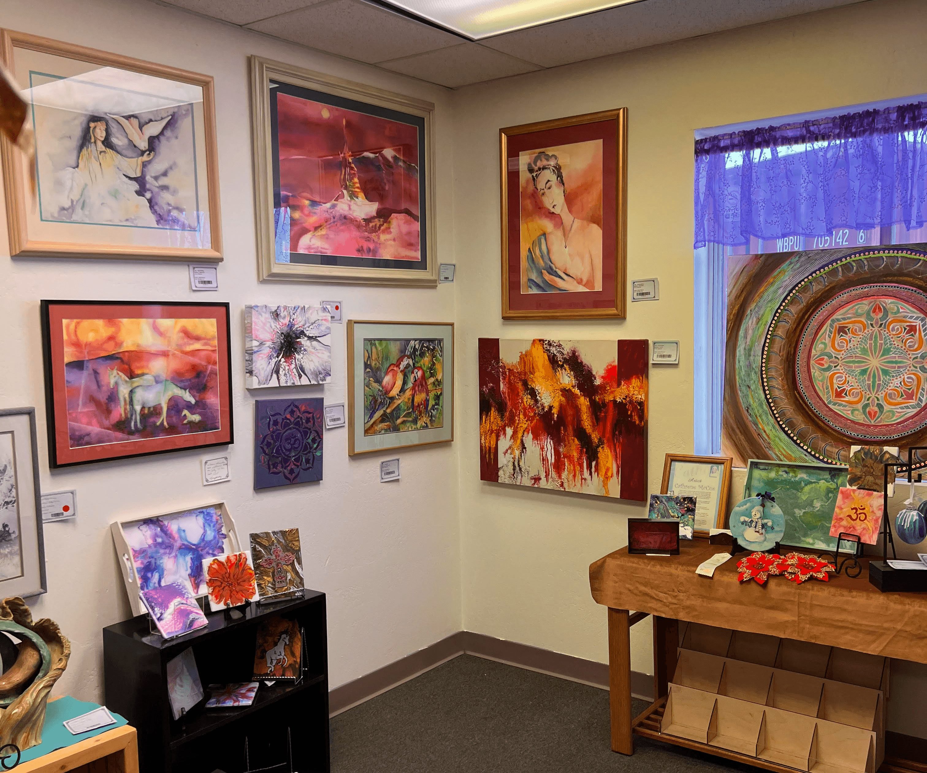 Our gallery belongs to, and is a part of, our community. As such, anyone is welcome to show their art here, whether they are an early beginner or a seasoned professional. We do our best to help people grow through attending our classes, reading their writings from the stage, participating in our events, or any way we can.