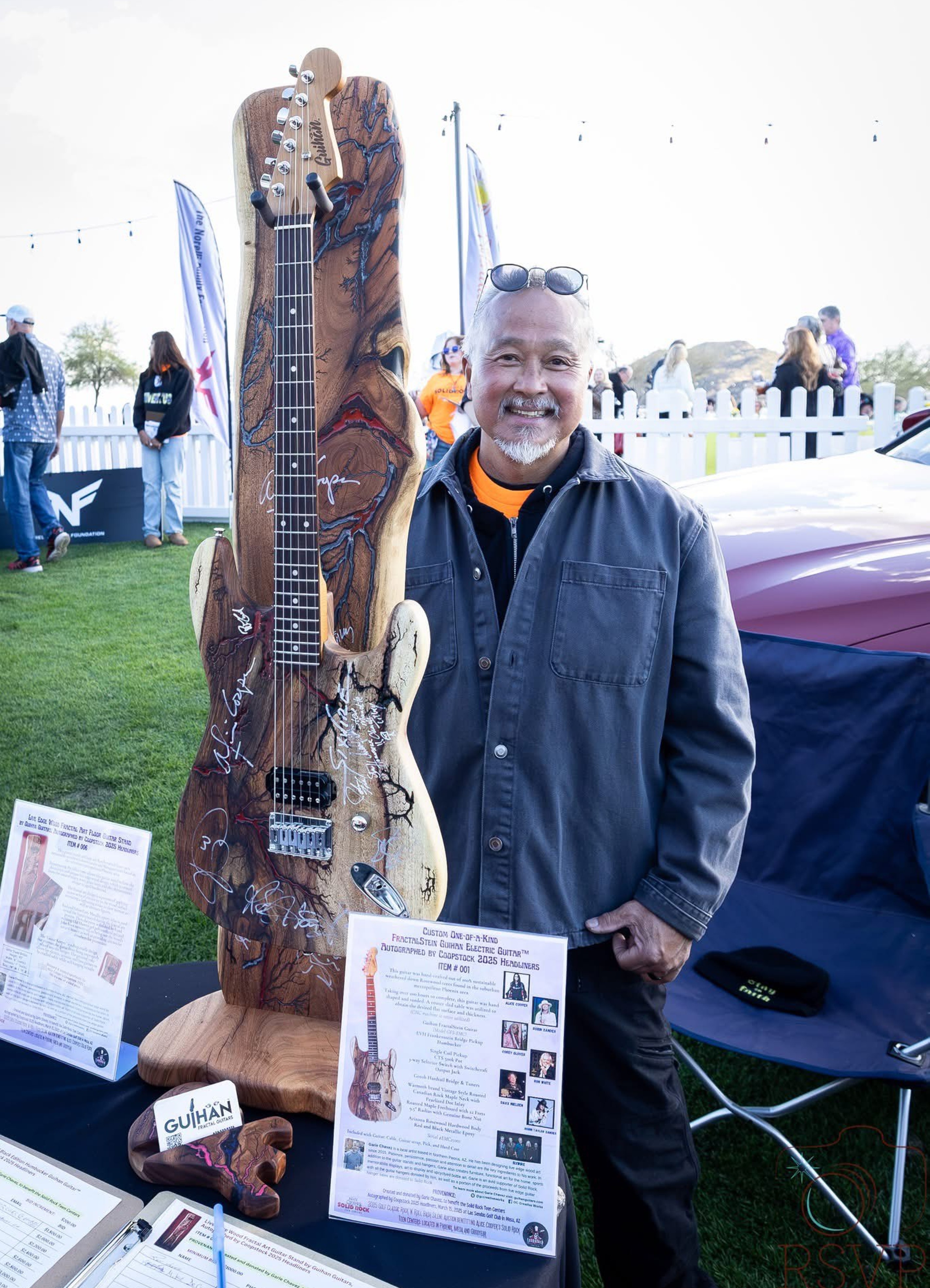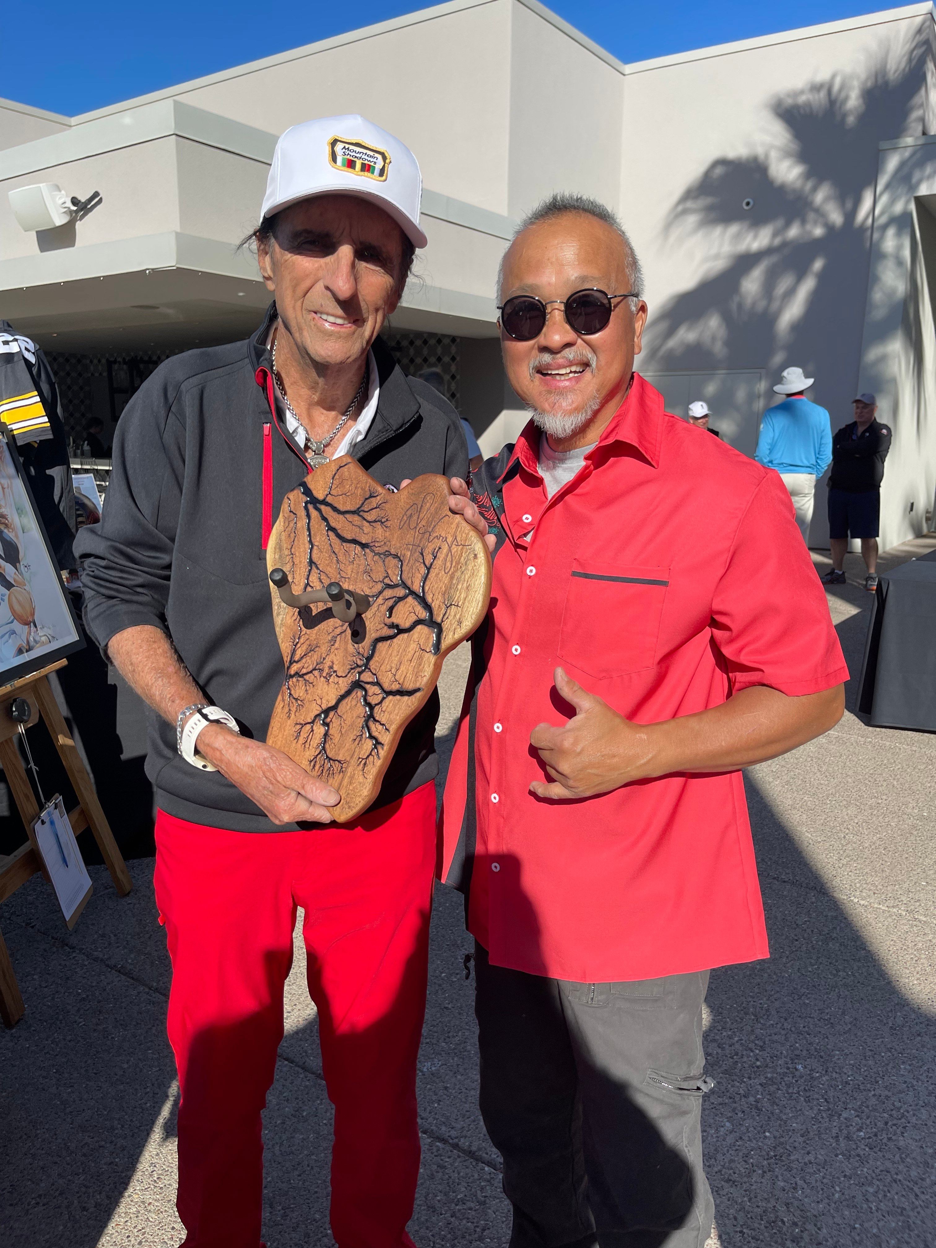 I’m most proud and excited to always give back to the community. I’ve been playing guitar since 1975. Fast forward to 2023, I built my first custom handmade electric guitar. This year, I donated a custom handmade electric guitar to Coopstock annual fundraising event established by musician Alice Cooper to support his Solid Rock Teen Centers. These centers provide free music, art, and vocational training programs for teenagers aged 12 to 20 in Phoenix, Mesa, and Goodyear, Arizona. At the end of the silent auction, the guitar went for $4,400.