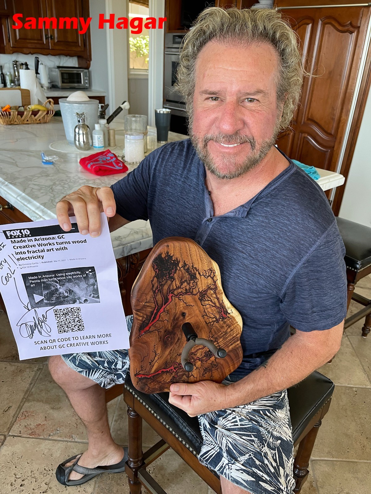 I make custom handmade guitar hanger and centerpiece fractal art to numerous celebrities and musicians. I made a fractal heart centerpiece to David Foster and Katherine McPhee. Pat Benatar has a charcuterie board and her husband Neil Giraldo has a guitar hanger. Sammy Hagar, Michael Anthony, Joe Satriani, Zakk Wylde, George Lynch, Joan Jett, Lita Ford, Don Felder, Kenny Wayne Shephard, Neal Schon, Ed Roland, Alice Cooper, Jimmy Sakurai, Stevie Salas and many more artists have my guitar hanger.