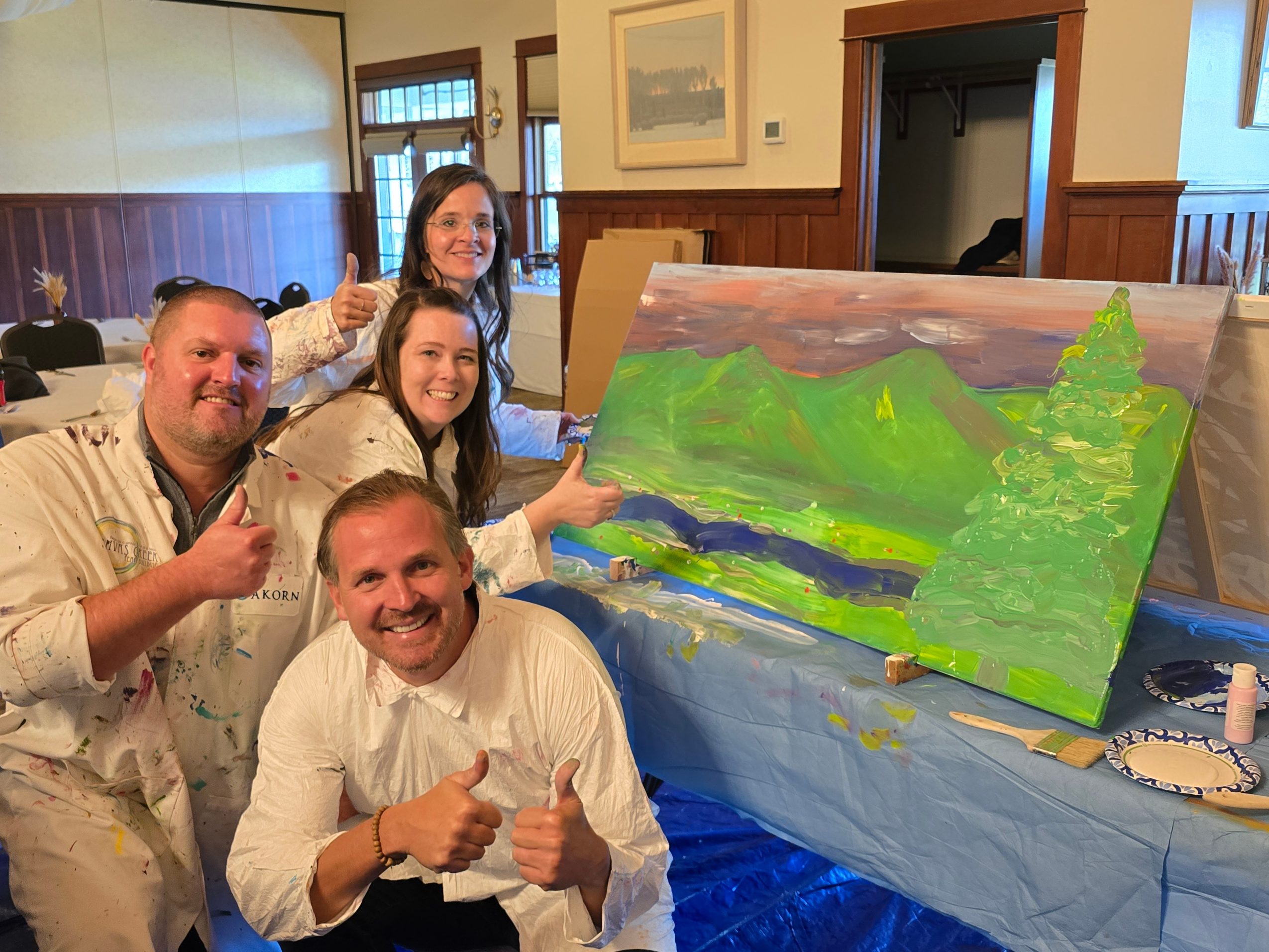 Then, another business we owned needed my attention. Then we had a family death, then a tragic accident all lined up for slow it down distractors. After each distraction I had to start again. Find the passion, the clients, and the faith to go at it again. Just as I was dragging this business uphill, almost ready to gain momentum, Covid hit. During Covid I wrote my 5th book, Quiet Leadership, and in it I talk about The Red Ds: Death, Divorce, Disease, Disaster, all of those D words that derail us. Looking at my own list of Red Ds I had to ask myself if Canvas Creek was still the right thing, especially during Covid- that was a bleak time for team builders! Every time I asked that question I find a reason to go forward, a team to help, a connection to my mission. After Covid, we did not come back with the same breakneck pace, but today Canvas Creek is an even deeper (no pun intended) experience.