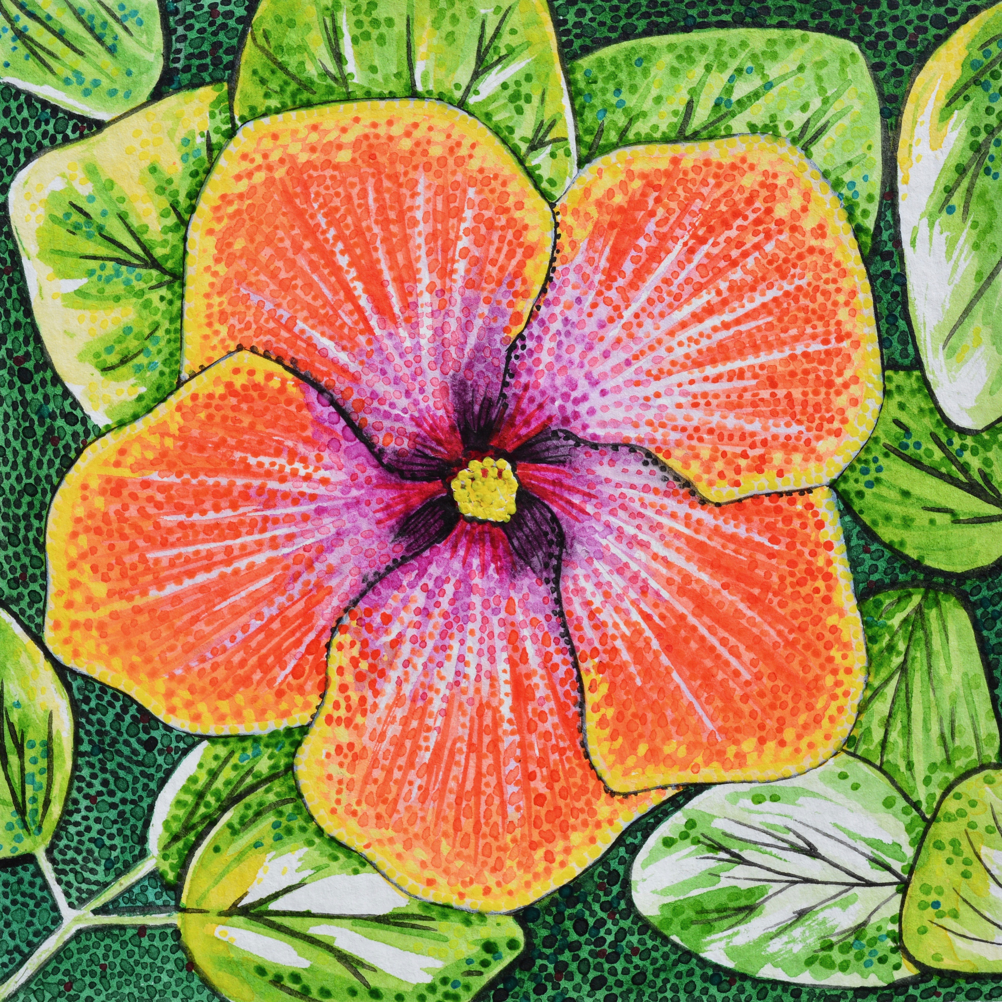 I have always loved to showcase personality, bright color, and pattern in my style. As a child, my imagination was captured by the concept of pointillism. As an adult, I became a collector of folk and outsider art, drawn to its pure expression, bright colors, and bold patterns and colors. Both of these interests have inspired and informed my painting style and use of color.